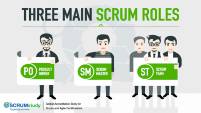 Hay tres funciones en la metodología Scrum: Product Owner, Scrum Master y Desarrollador. Juntos conforman el equipo Scrum (Scrum Team).